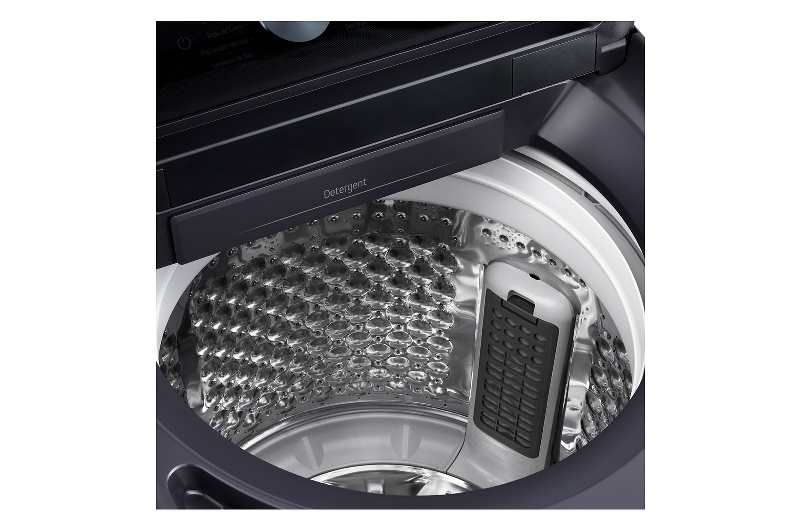 Máy giặt LG Inverter 22 kg T2522AX7G sở hữu khối lượng giặt lên đến 22 kg, lý tưởng cho gia đình trên 7 thành viên hoặc các hộ kinh doanh nhỏ. Thiết kế lồng đứng cửa trên kết hợp công nghệ EasyUnload™ giúp lấy quần áo dễ dàng, không gây mỏi lưng hay ảnh hưởng đến độ bền máy. Nắp máy đóng nhẹ với hệ thống Soft Closing Door tăng thêm sự an toàn, đặc biệt khi có trẻ nhỏ trong nhà.