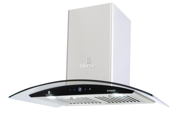 Thân máy với kiểu dáng kính cong gắn tường đẹp mắt với chất liệu inox và kính cường lực máy có tính chịu nhiệt, chịu lực rất cao. Khách hàng có thể hoàn toàn yên tâm về độ an toàn của máy. Máy có màu bạc nhìn rất sáng và sang trọng, đẹp mắt. Với kích thước 70cm máy có thể kết hợp với rất nhiều kiểu bếp vì hầu hết các bếp đều có kích thước tương xứng. Máy phù hợp với những không gian rộng rãi sẽ tăng thêm vẻ sang trọng cho gian bếp của bạn. Chất liệu của máy được làm bằng chất liệu inox và kính cường lực tăng độ bền cho máy và độ an toàn cho người sử dụng. Đây là dòng sản phẩm gắn tường của Blueger, với các chức năng đặc biệt, được lắp ráp bởi vật liệu hạng nhất giúp làm sạch không khí, giữ căn bếp trở lên thoáng mát và đảm bảo yếu tố thẩm mỹ cũng như tính bền bỉ theo thời gian. Máy hút mùi Blueger B70Slide sử dụng bảng điều khiển cảm ứng gồm 8 tốc độ hút phù hợp với lượng mùi và khói khi nấu ăn để đảm bảo sạch mùi cho không gian bếp nhà bạn. Hệ thống đèn chiếu sáng của máy gồm 2 đèn Led có tác dụng chiếu sáng và làm cho công việc nấu ăn thêm thuận lợi. Lưới lọc mỡ bằng Inox dạng thanh nan để ngăn chặn triệt để mùi, bụi lọt vào bên trong máy gây hỏng động cơ. Tấm lưới này có thể tháo rời để vệ sinh một cách dễ dàng.