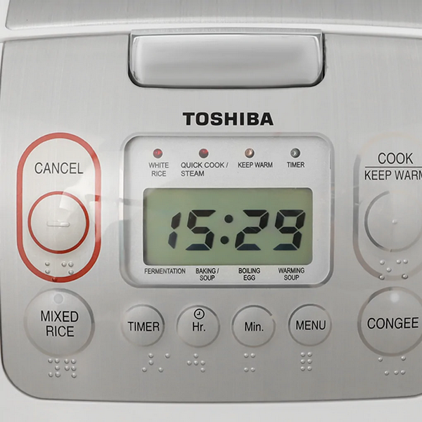 Nồi cơm điện tử Toshiba RC-10NMFVN(WT) sử dụng bảng điều khiển nút nhấn điện tử, màn hình hiển thị rõ ràng, giúp người dùng dễ dàng thao tác và điều chỉnh các chức năng nấu nướng chính xác. Thiết bị tích hợp chức năng hẹn giờ nấu tối đa 24h (Có 2 chế độ cài đặt), cho phép cài đặt thời gian nấu mong muốn, tiết kiệm thời gian hiệu quả.