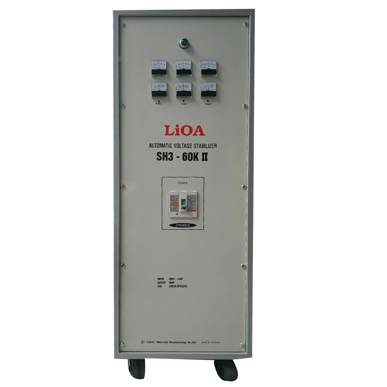 - Ổn áp 3 pha khô SH3 Lioa SH3 60K II thích hợp với những nguồn lưới điện bình thường trong khoảng từ 260V đến 430V/pha.